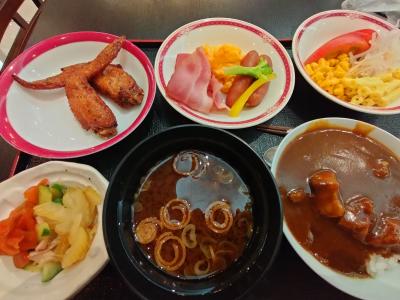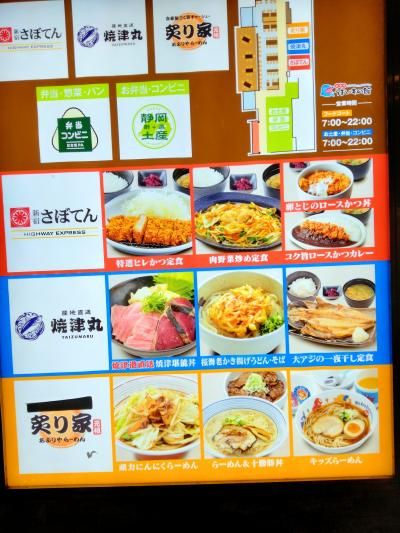 新宿さぼてん(トンカツ)、焼津丸(海鮮)、炙り家(ラーメン)が並ぶ「うまいもの館」や、ファミリーマート(コンビニ)もあり便利そうでした。- 旅行時期