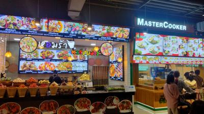 4階のフードコートで昼食しました。(ラーメンとタイ風サラダを70バーツで食べました。