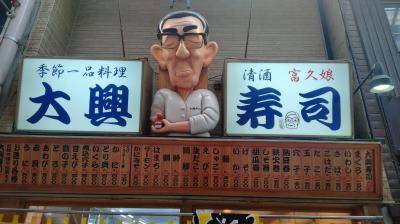 大阪新世界を歩いているうちに11時少し前に「ジャンジャン横丁」で行列を見つけ、3貫300円のメニューが並んでいたので、速攻並びました。