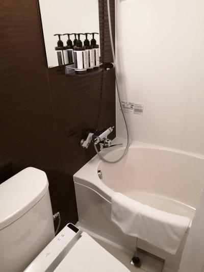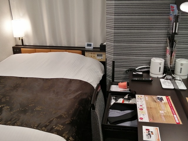 アパホテルなので、室内は狭くても快適で、そこそこの広さの大浴場もあり、露天風呂は外の建物が見える程度でした…。
