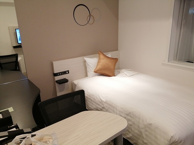 部屋は少し狭く感じましたが、サイドデスクやベッド周りのコンセントや小棚は便利でした。