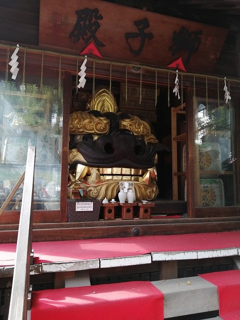 閉鎖した築地市場に隣接していましたが、吉野家さんの石碑と赤と黒の大獅子が目立ちました