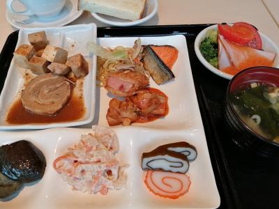 夕食は牛ステーキ御膳を選び、朝食はビュッフェ形式でした。