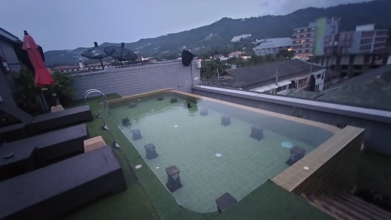 カロンビーチから2km程坂を上がったところにありますが、周辺には食事場所やコンビニもあります。