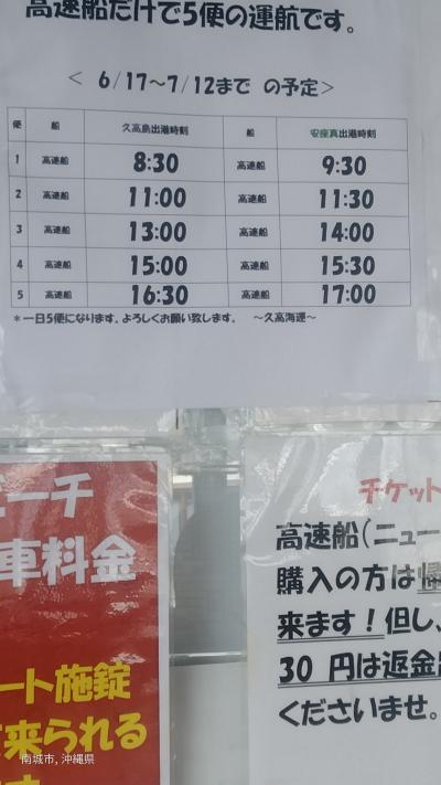 南城市の安座真港から9時30分発の久高島行きのフェリーに乗ろうと思い、那覇バスターミナルから1時間程で着きました。