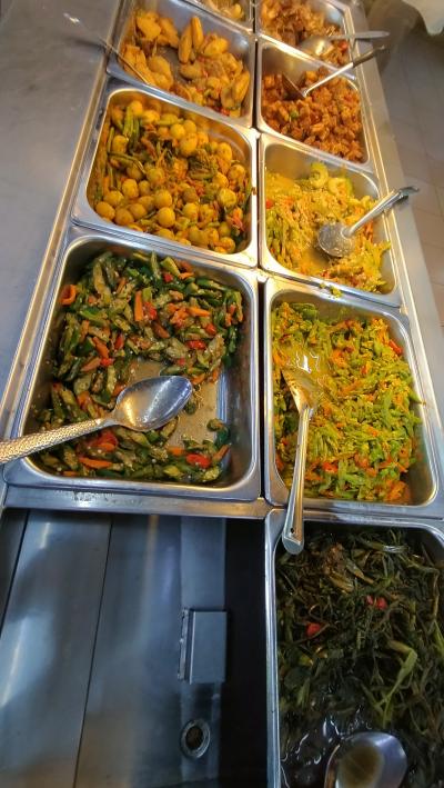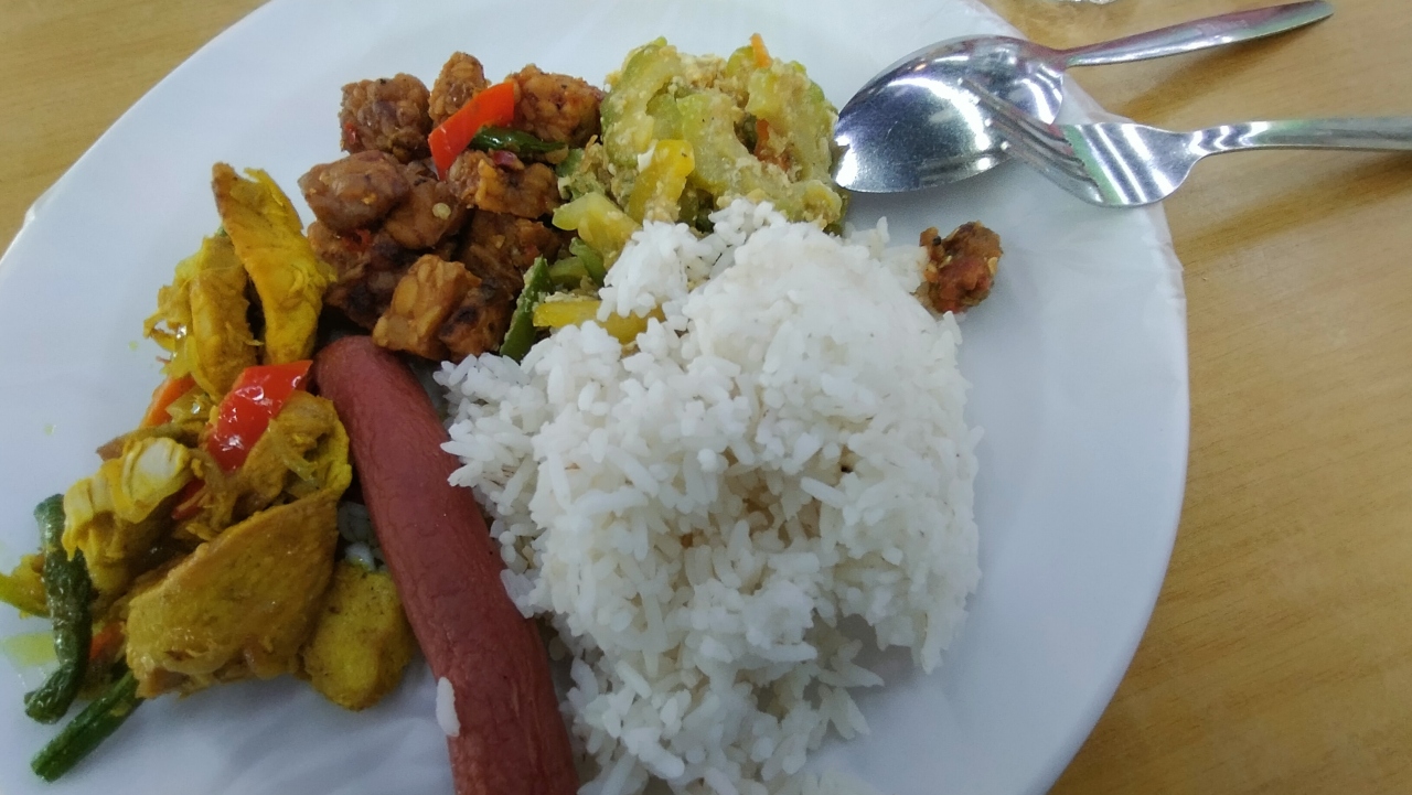 せっかくなので、「スパイシーなお惣菜とライス添え」を、美味しくいただきました。(400円)- 旅行時期