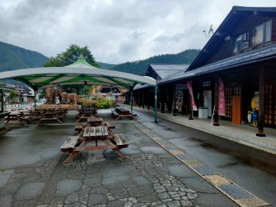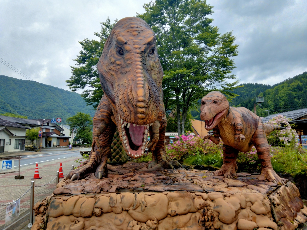 岐阜県白鳥ICから国道158号線を30Km(40分)位走ると、恐竜親子に着きました