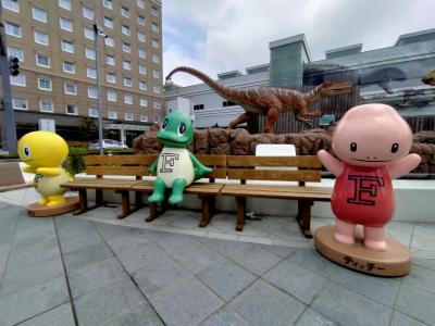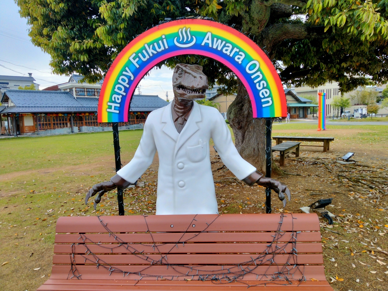 福井県ではおなじみの恐竜ベンチが置いてありました。- 旅行時期