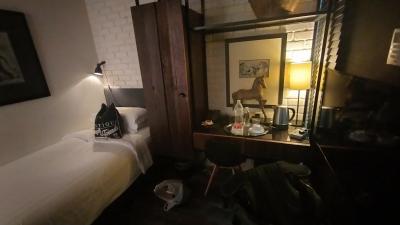 シングルの室内は清潔でアメニティ/水も備えられていました。