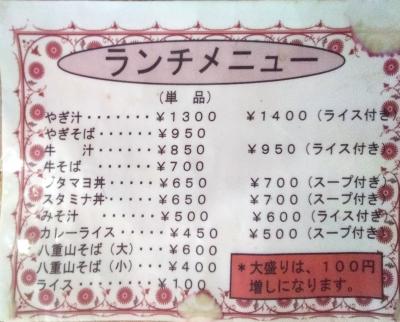 お勧めは「ヤギ汁」らしいですがそばも食べたかったので、「ヤギそば」(950円)をオーダーしました。