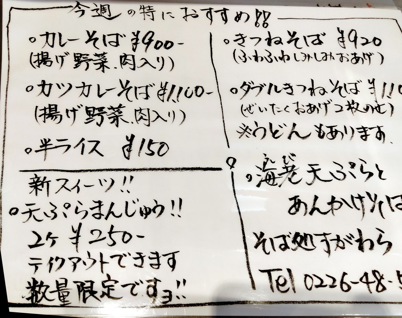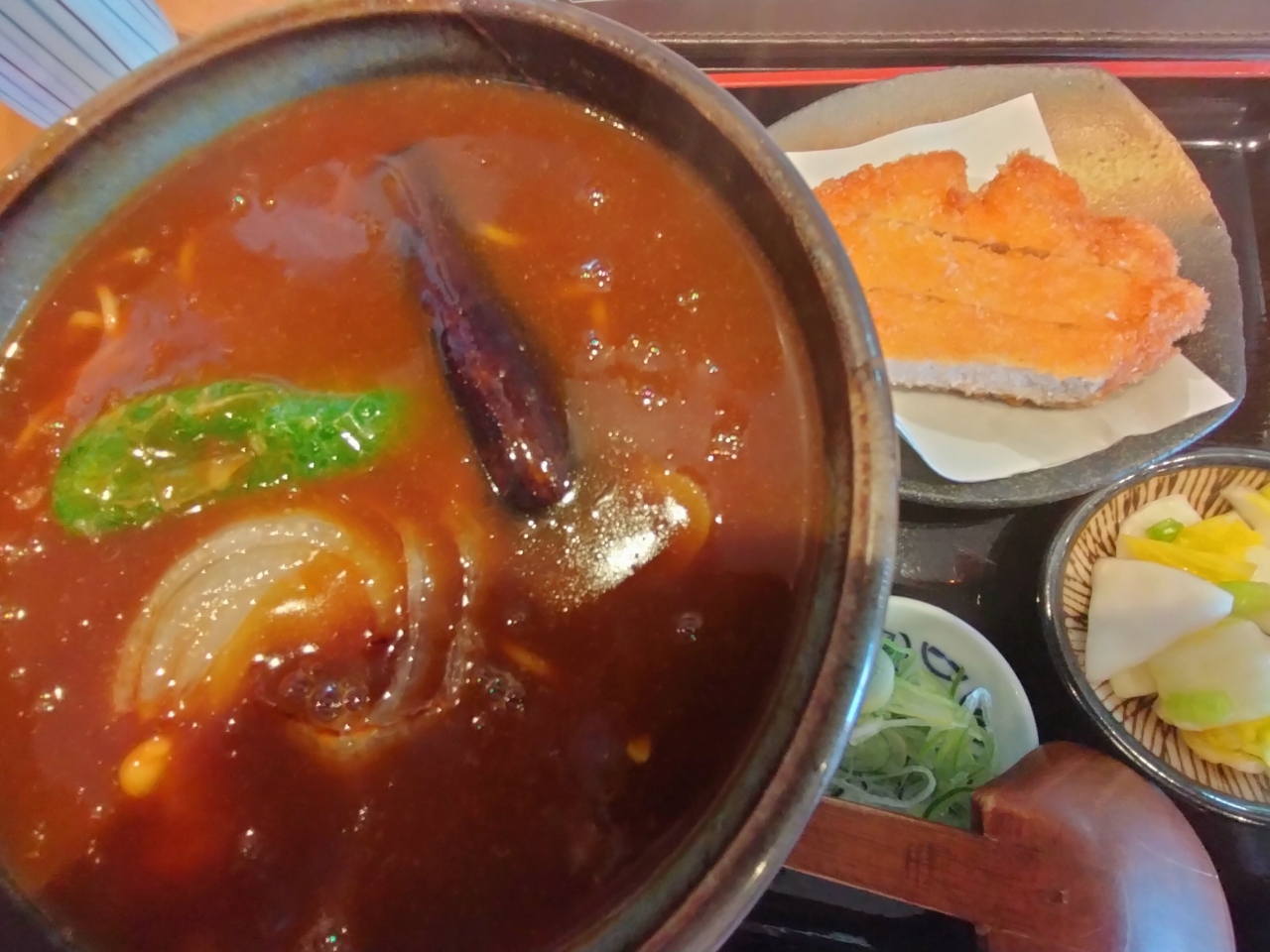 今週の特にお勧めのカツカレーそば(揚げ野菜/肉入り)1,100円をいただきましたが、そばとカレーの相性は微妙でした。