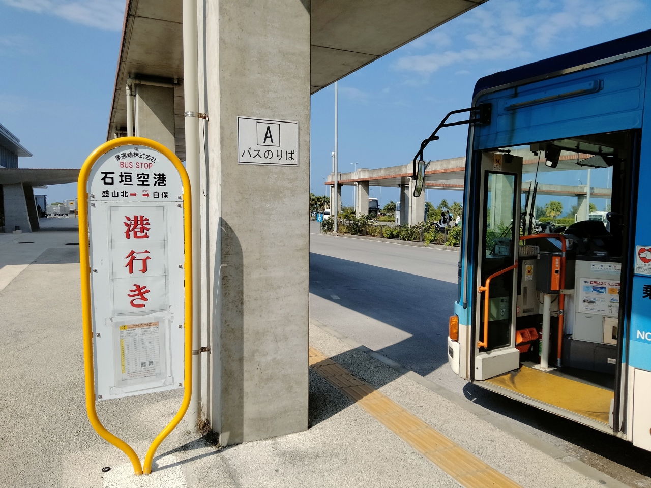 石垣空港から離島ターミナル行きの路線バスで、裁判所前で降りると徒歩3分程度です。