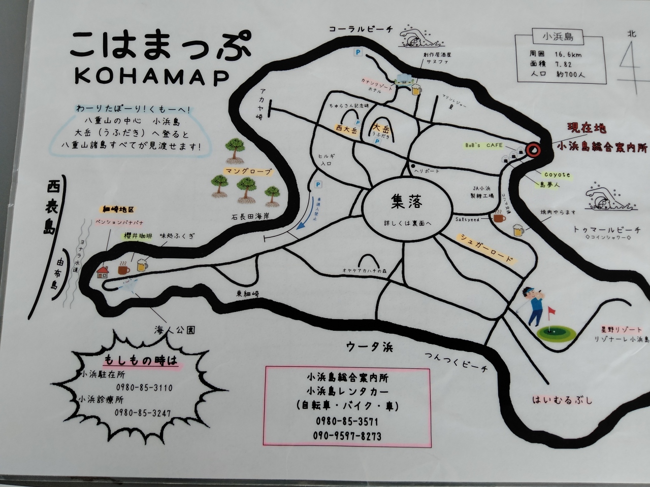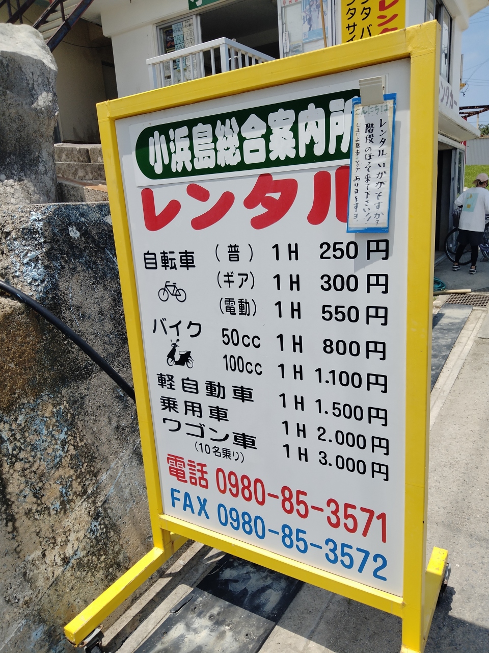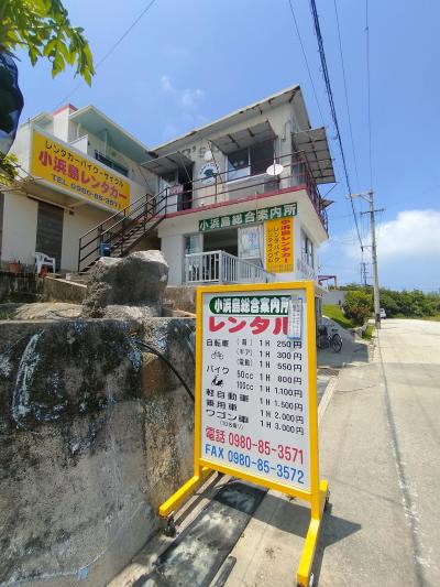 小浜港の前に、3軒並んだレンタルショップ(車、バイク、自転車)の一番奥側にある気さくなおばちゃんのお店でした。