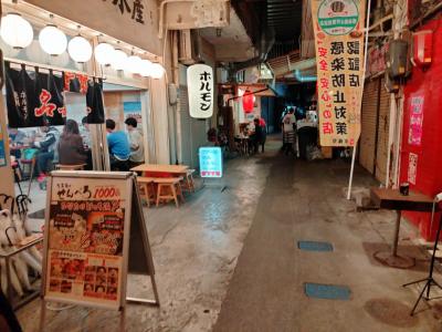 お土産屋さんが並ぶ通りを路地裏に入ると昼間から「せんべろ」の居酒屋さんが賑わっていました