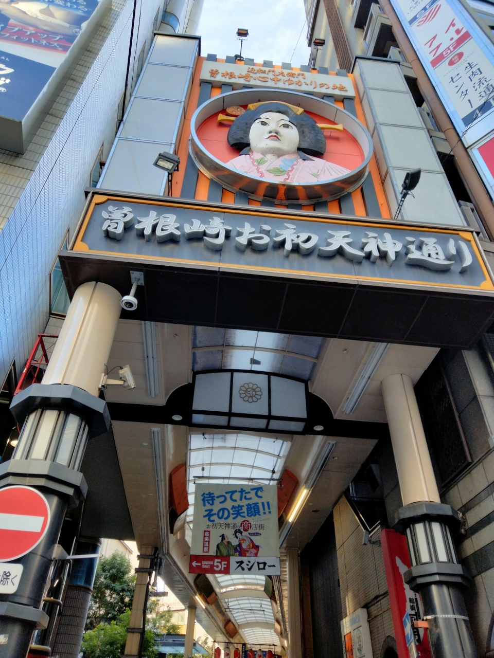 阪急うめだ本店近くからお初天神まで、300m程続くアーケード商店街です