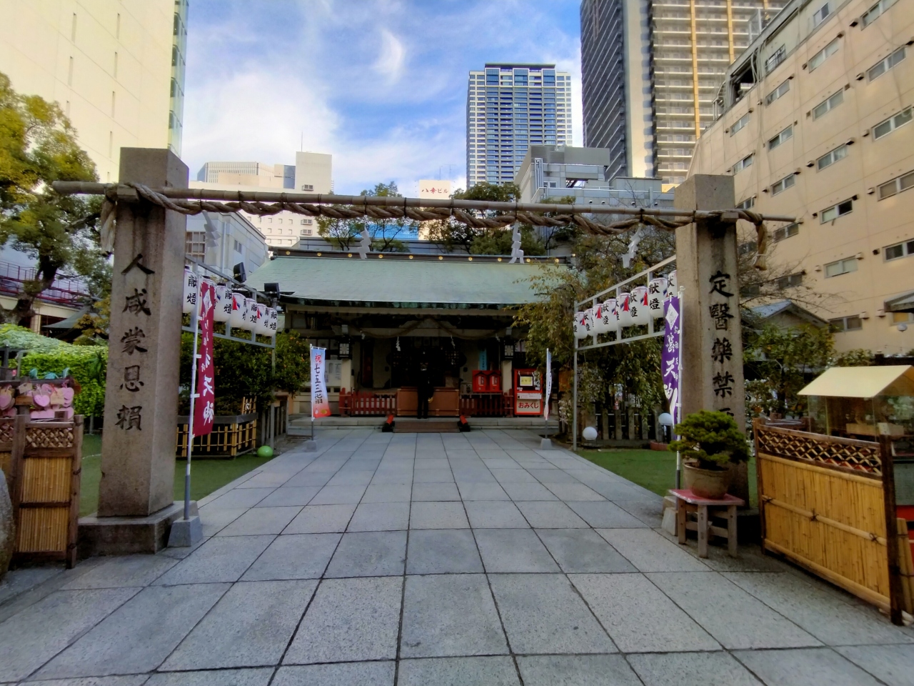 「お初天神通り商店街」を南へと歩くと曽根崎の総鎮守の露天神社(つゆてんじんじゃ)があります。(別名:お初天神)