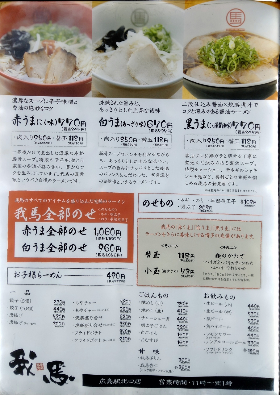 赤うま、白うま、黒うまの3種の味が売りの、広島中華そばのチェーン店です