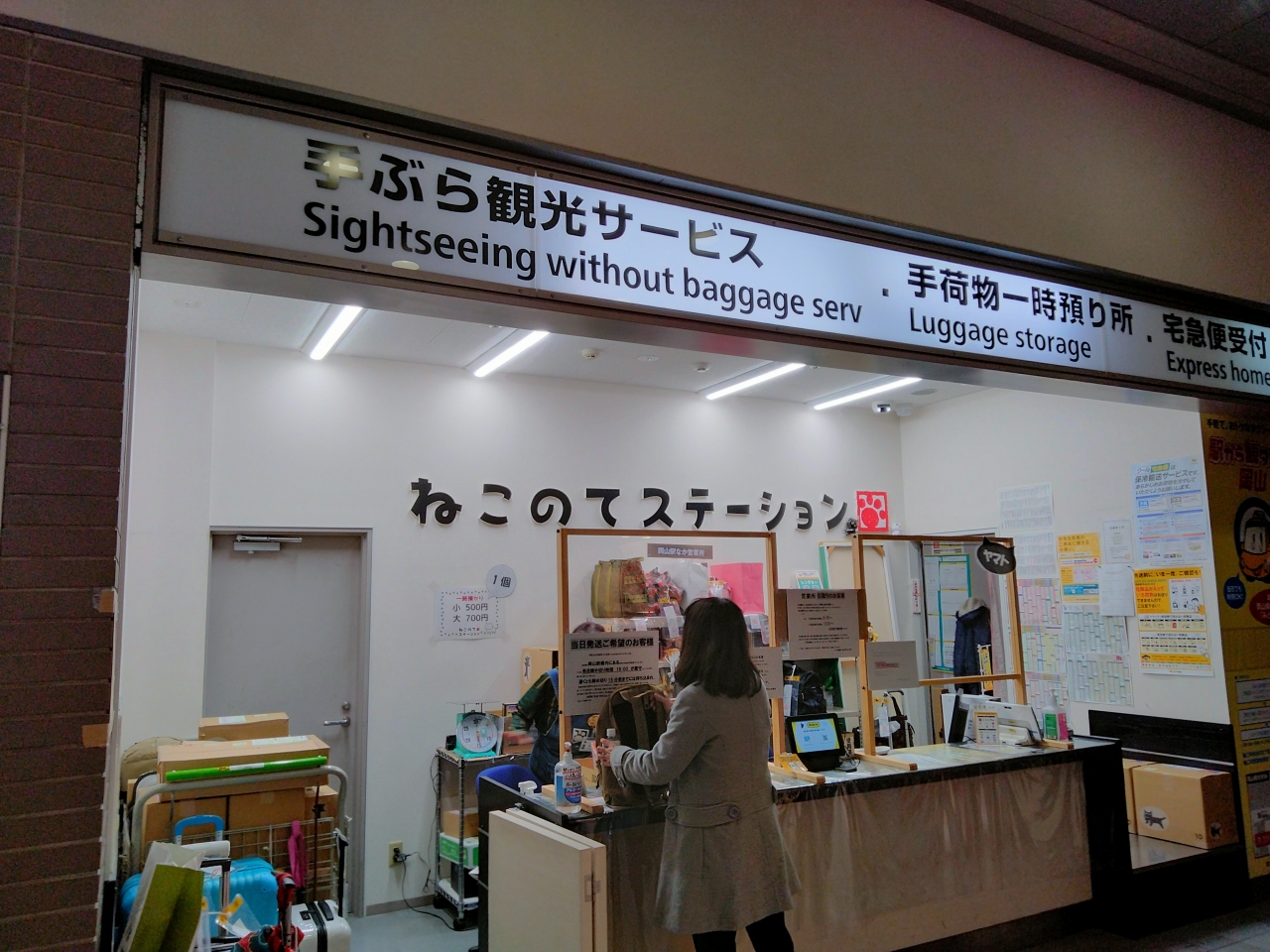 岡山駅構内2階の「ねこのてステーション(手荷物一時預かり)」は、お勧めです。