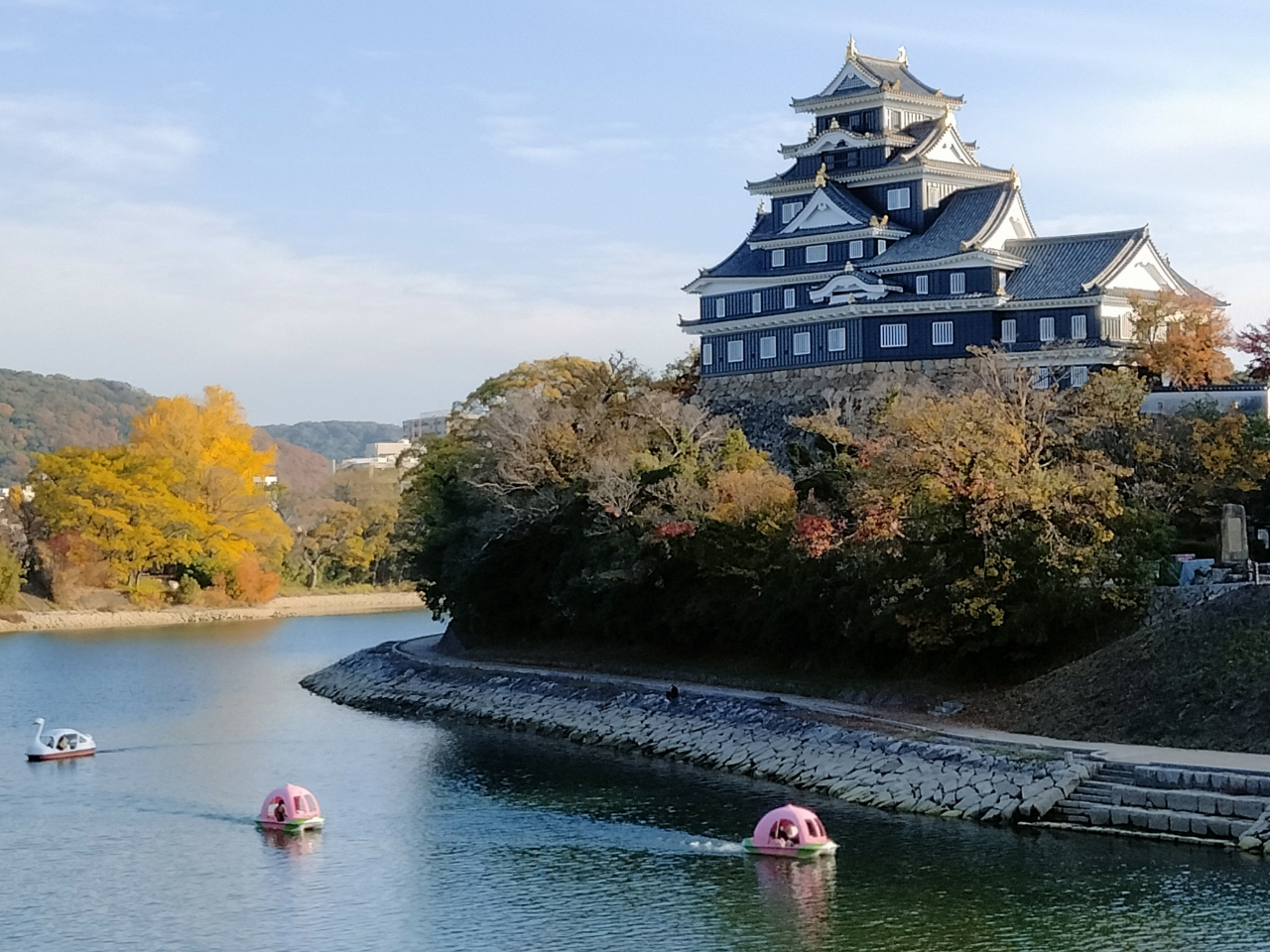 JR岡山駅から路面電車に乗り換え、城下駅下車で訪れましたが、「烏城」の通り漆黒のお城でした。