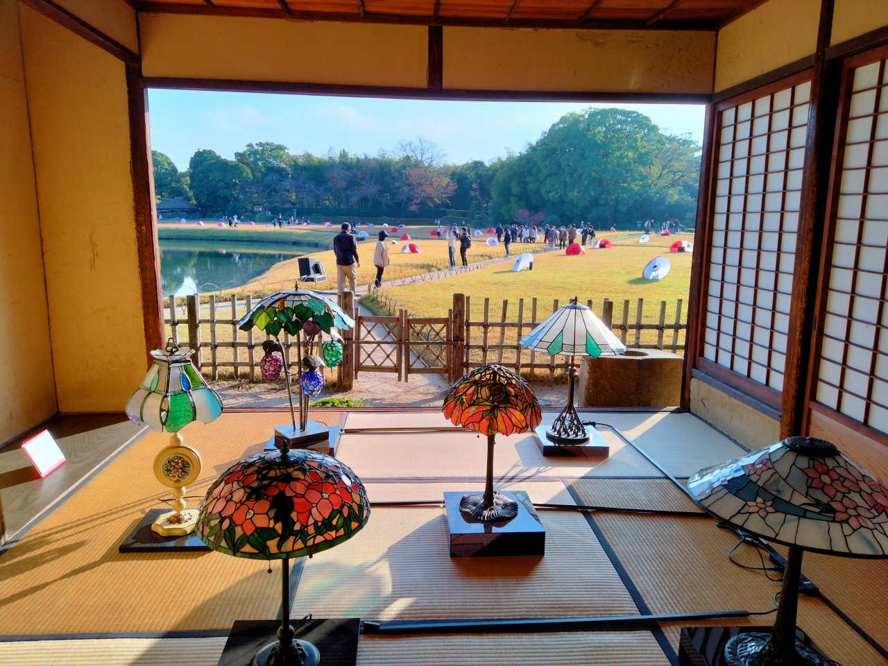 大きな芝生広場が目立っていて、三名園の理由が知りたいところです