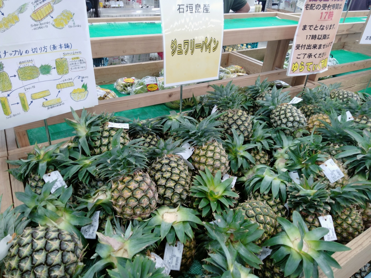 JAおきなわが運営しているそうで、果物(パイナップル/バナナ/マンゴー)や野菜類を中心に石垣牛等が並んでしました。