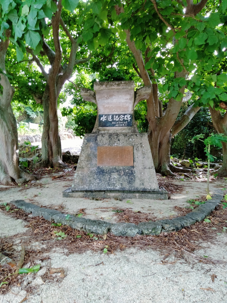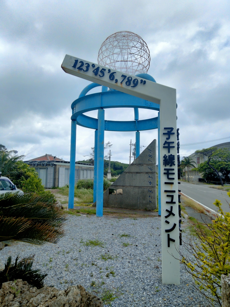 上原港から215号線を西へ進むと、東経123度45分6.789秒にモニュメントが建っていました。