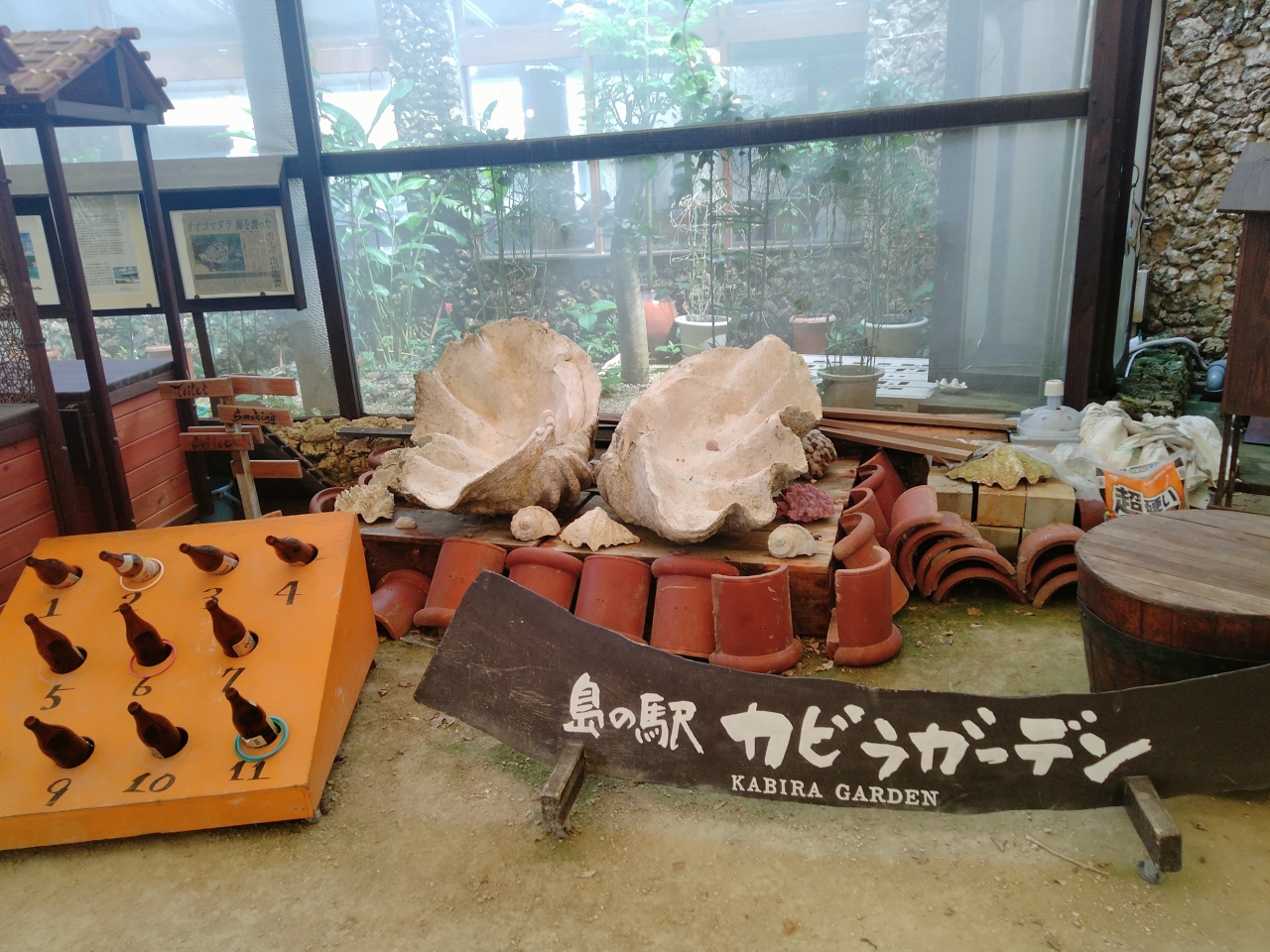 帰りのバス(12:53発)まで2時間以上、展望台や島の駅カビラガーデン内でビールを飲みながらのんびり過ごしました。