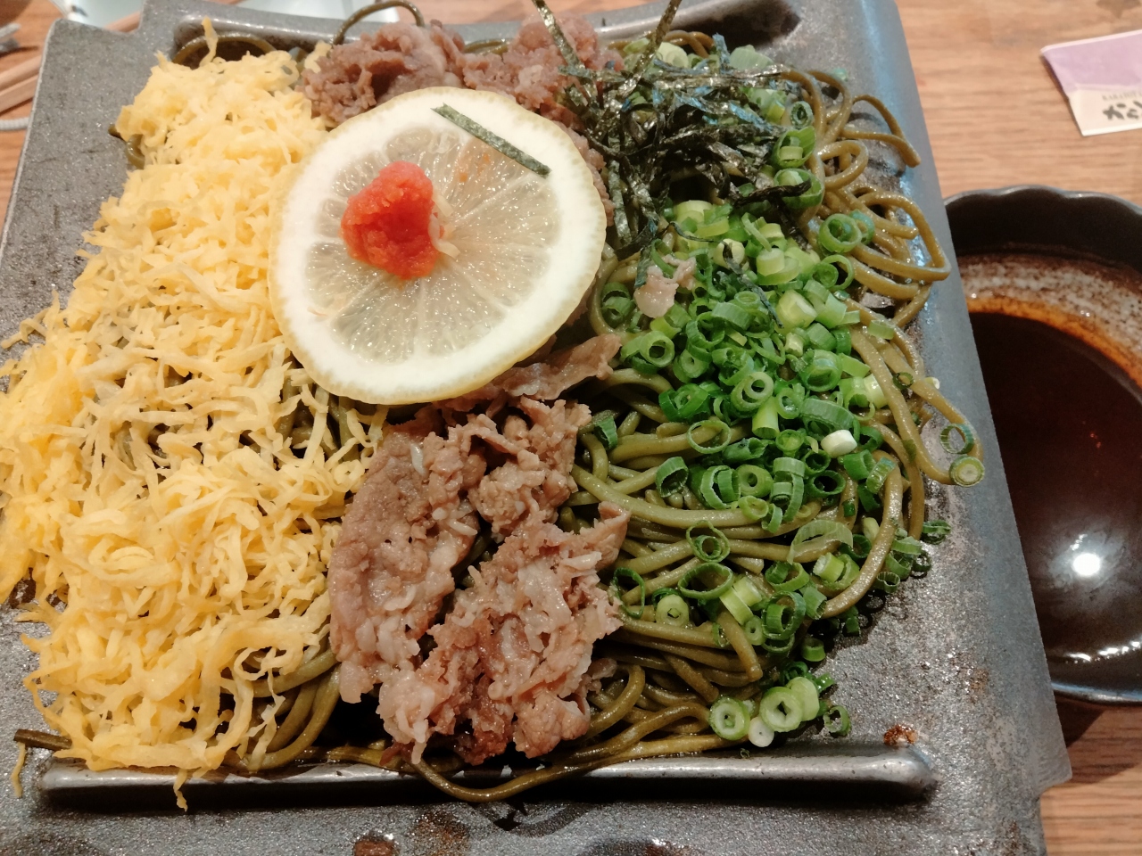 瓦そばは、熱々の瓦の上にのった茶そばをさっぱりつゆでいただきます。