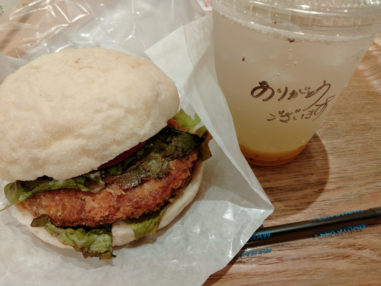 さばバーガーと発酵ドリンク(キウイの炭酸割)のセット(600円)をいただきました