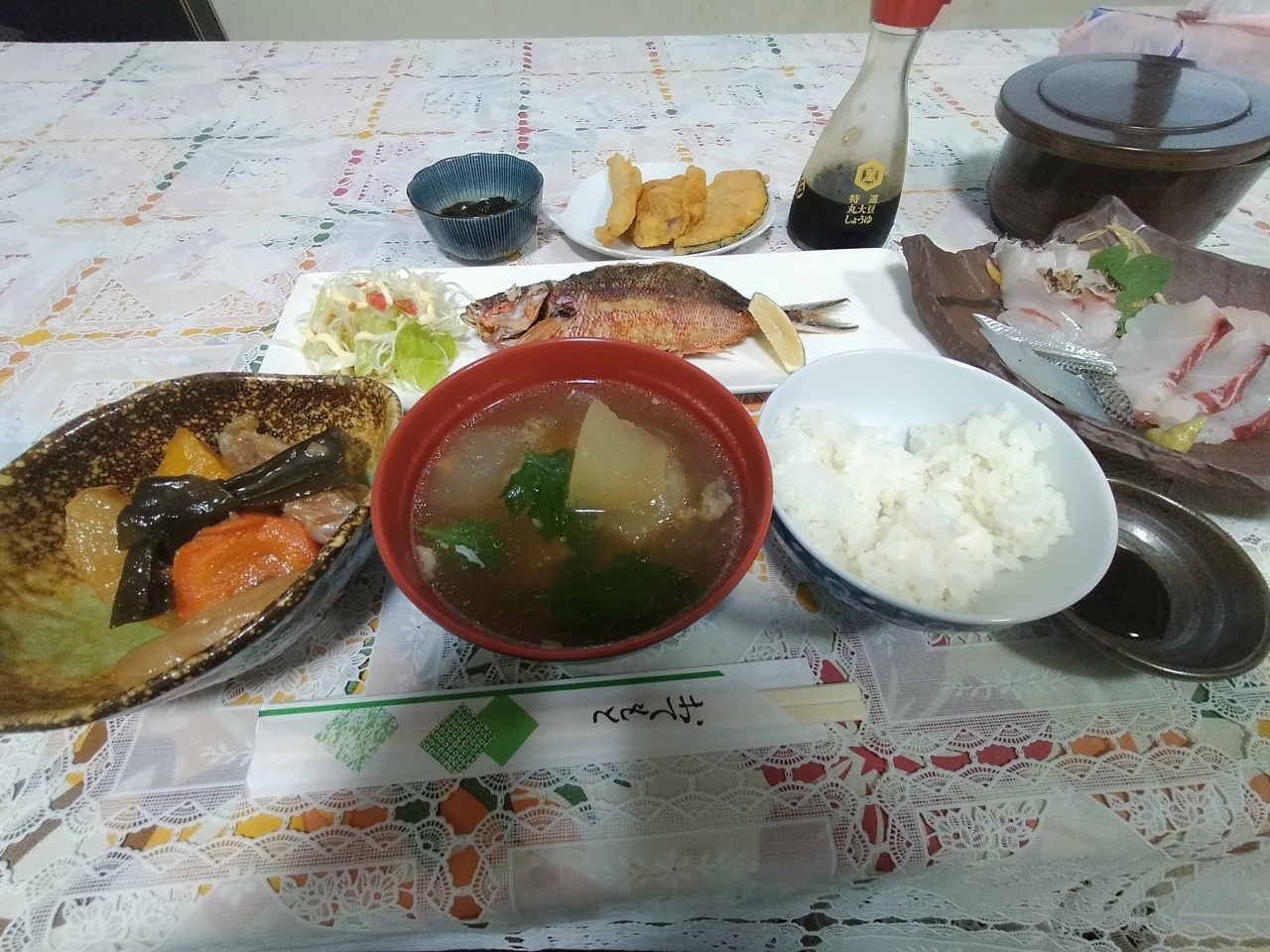 夕食や朝食では、ご主人が採ってきた魚を刺身やから揚げでいただきました。- 旅行時期