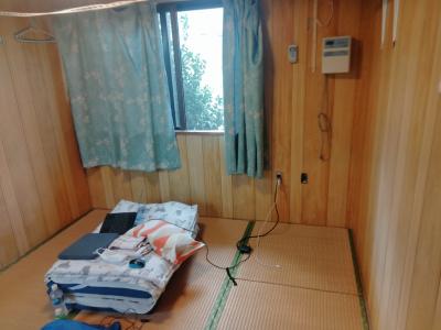 4畳半ほどの個室で、共同シャワー/トイレ/食堂等があります。