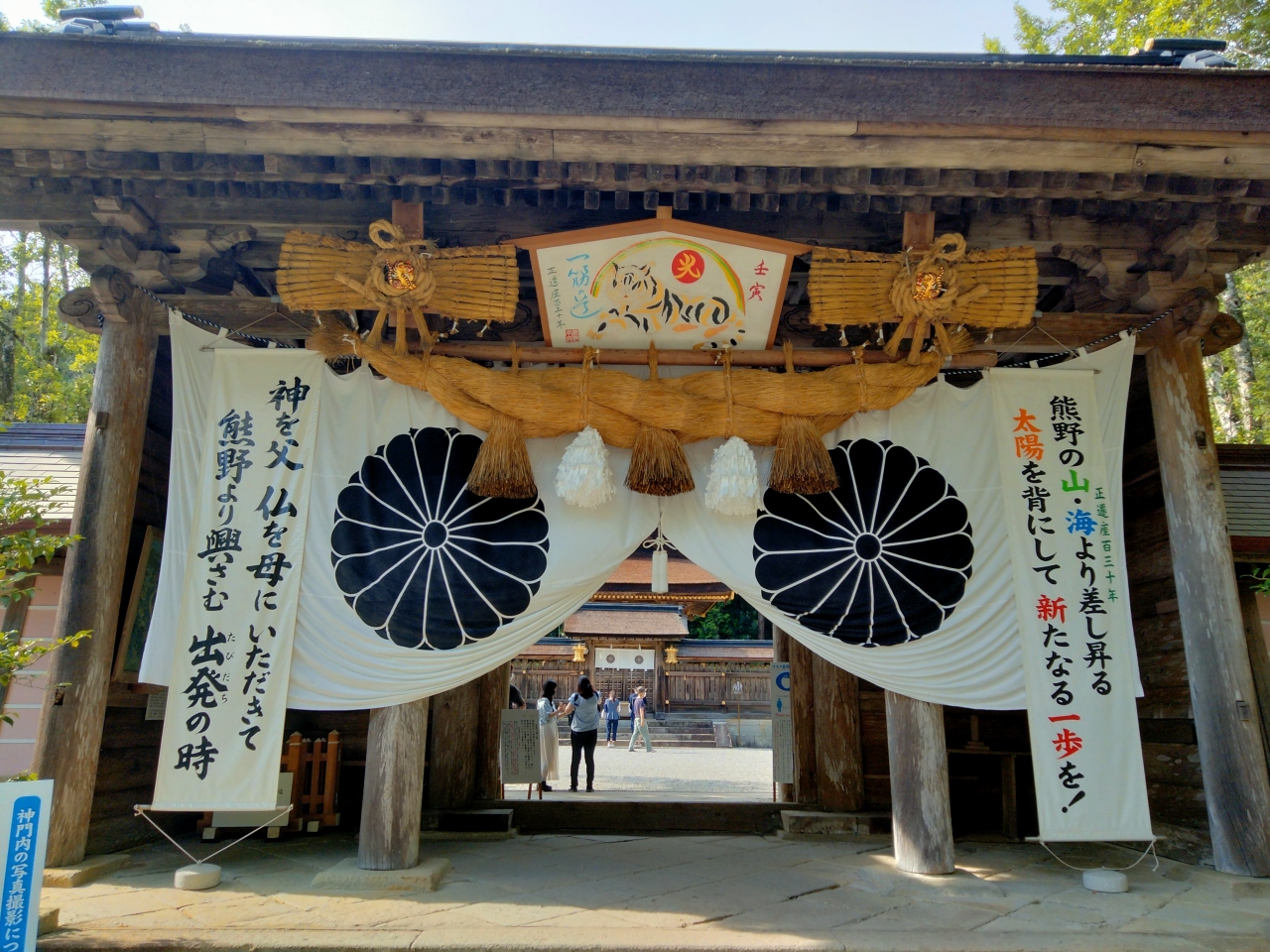 家津美御子大神(スサノオノミコト)を主祭神として、紀元前に大斎原に社殿が建てられ、平安時代には京都から熊野古道を通って上皇等が何度も参拝に訪れた、由緒ある場所です。