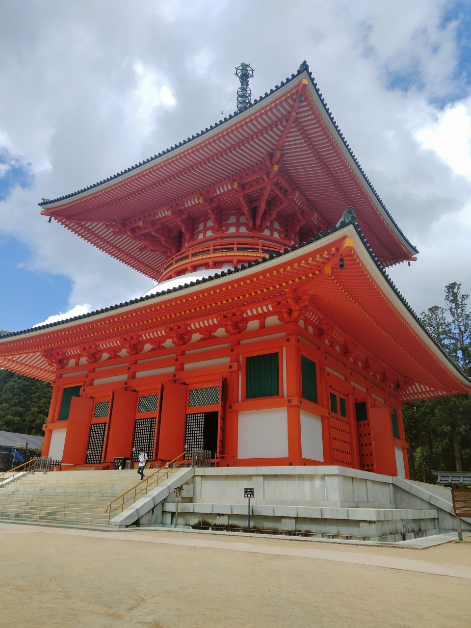 朱色の大塔(高さ50 m )で、高野山のシンボルの一つの様です