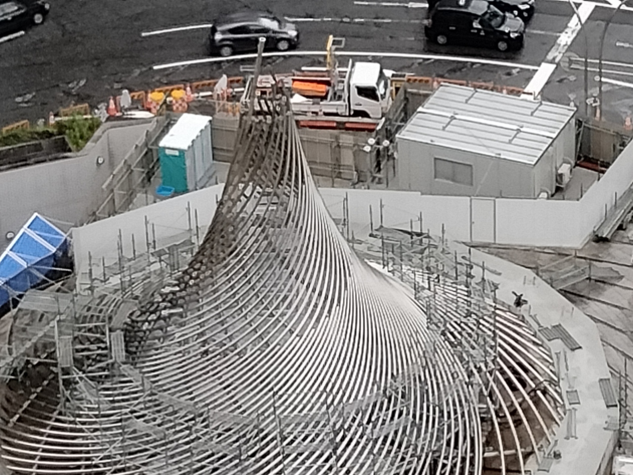 リニア新幹線の再開発に伴い解体途中で、ステンレス製パイプのてっぺんが外されていました。