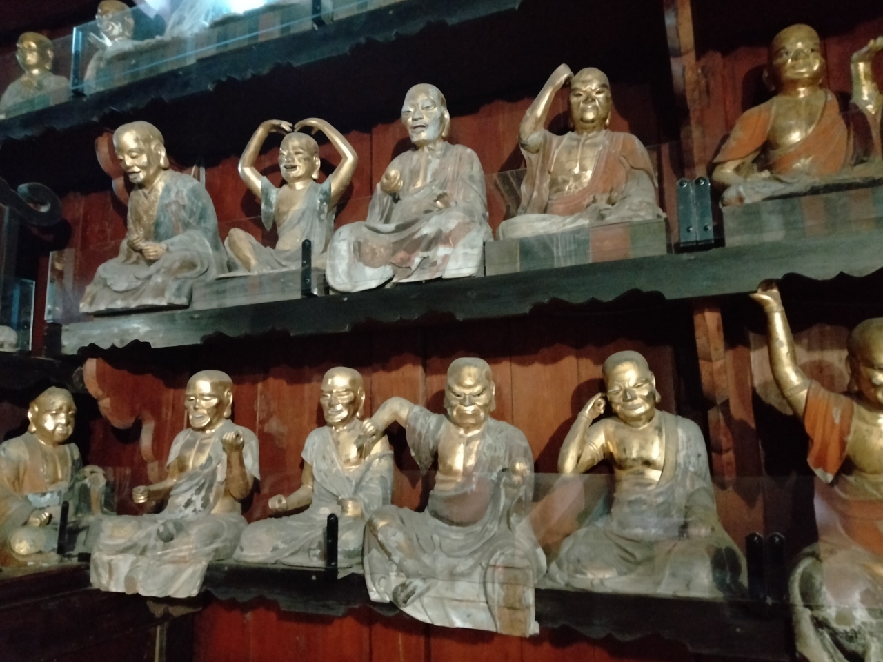 怒り/笑い/泣き/思い等の、様々な表情の羅漢様が静かに並んでいました。