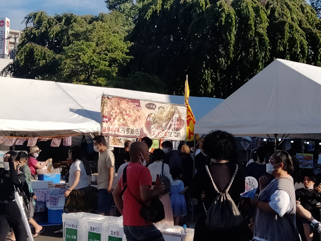 2022年7月17日に上尾駅に立ち寄ったところ、東口で旧中山道を交通止めにして屋台が立ち並んでいました。