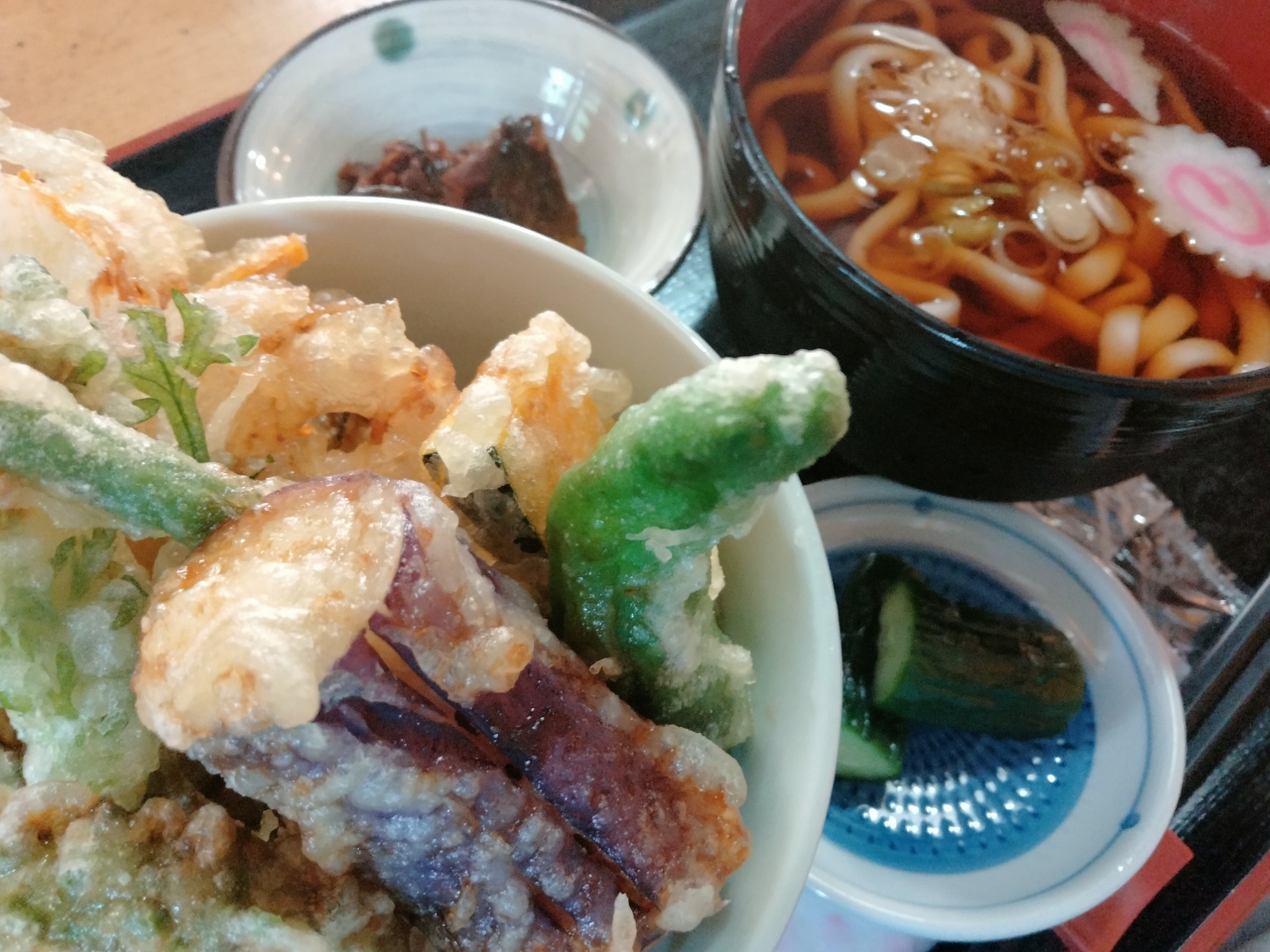 正直あまり期待はしていなかったですが、「今日のランチ(ミニ天丼+うどんセット:650円)」は、小さな丼に野菜天ぷらが8品程度のっていてボリューム満点でした。
