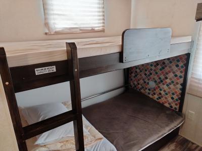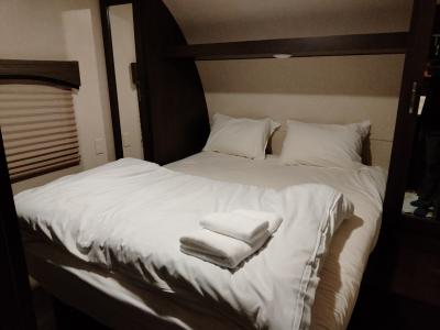 室内はキッチン/トイレ/シャワー/ベッドルーム(2段ベッド×2+ダブルベッド)/冷暖房完備で、最大6人程度宿泊できる様です。