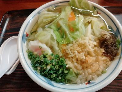今まではそばをいただいたので、今回は暖かい「季節の温野菜うどん(520円)」をいただきました。