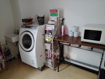 2階のエレベーター前には電子レンジや洗濯機も設置していました。