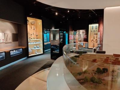 「静岡市立登呂博物館」では、1階は住居ジオラマ等の無料見学展示、2階(入場料300円)は稲作の歴史展示、屋上からは登呂遺跡全体が眺望できました。