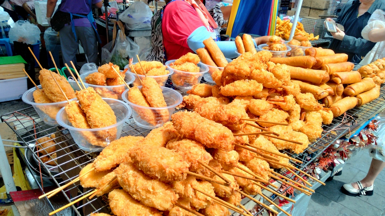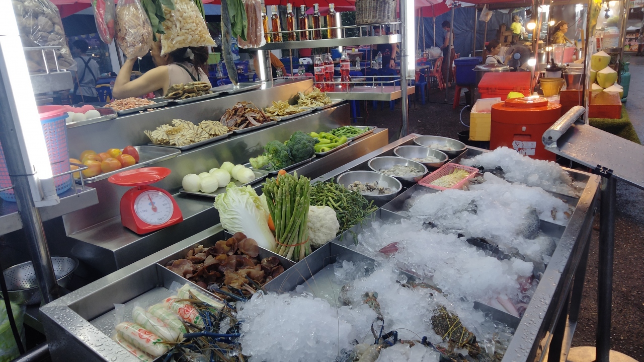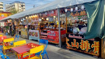 昼間は車が走る通りを17時頃から歩行者天国/屋台通りにする200m位のナイトマーケットで、食べ物/お土産/衣料/雑貨などの屋台が並びます。