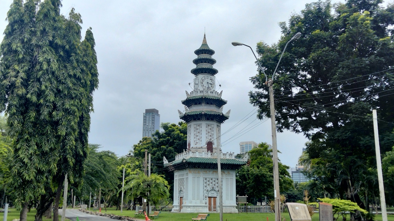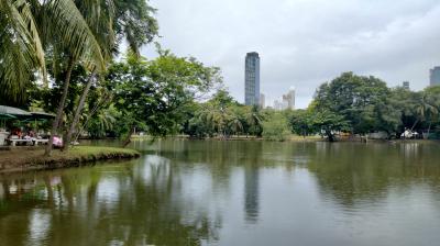 バンコク市内観光のため、近くの屋台で購入したお弁当を食べに来ました。