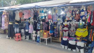 内部はきっちり区画されていて、観光客相手の衣料品、お土産品、雑貨などを取り扱いしています。