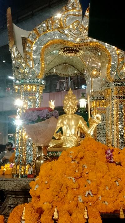バンコクの街中のBTSチットロム駅近くにあるヒンドゥー教(ブラフマー)の祠です。