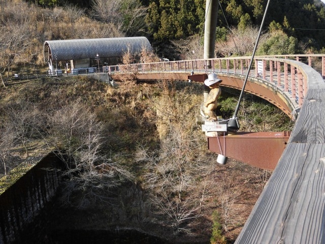 「祖谷ふれあい公園」では、祖谷川越えの「ロングジップ(4100円)」等のアトラクションもあり、もう一つの「小便小僧」も発見しました。