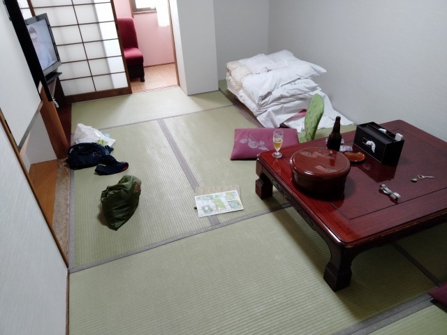 部屋は和室6畳で、タオル/アメニティ/電気ポットは置いてありました。
