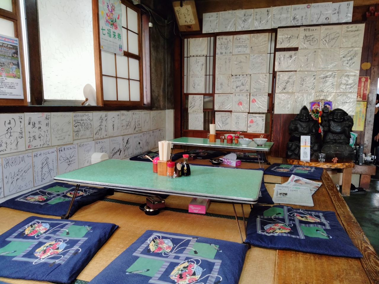 土間と座敷を改装した様な店舗内には、多くのサインが並んでいました。- 旅行時期
