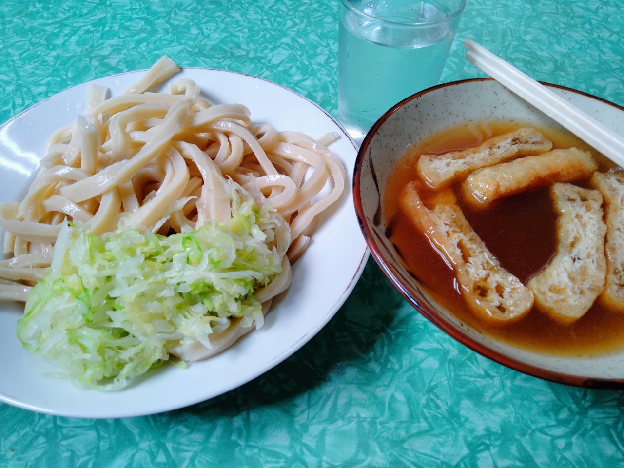 油揚げの入ったあっさり目のつゆと茹でキャベツがのった硬めのうどんが特徴で、400円でした。