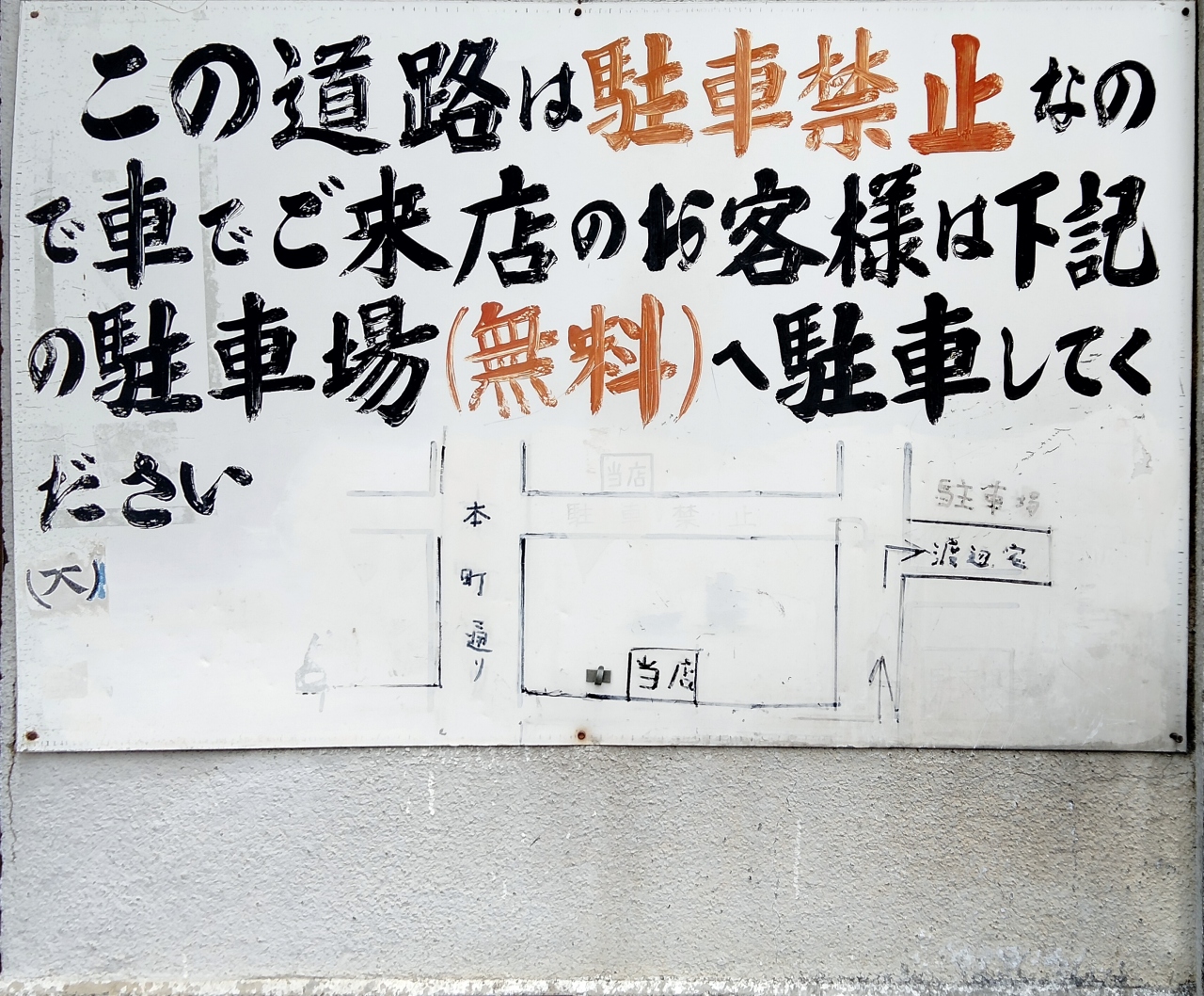商店街を少し入り、50mほど離れた駐車場(3台程度)に車を停めて、訪れました。